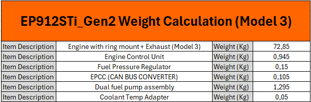Weight Example of EP912STi_Gen2 (Model 3) with ring mount and exhaust.